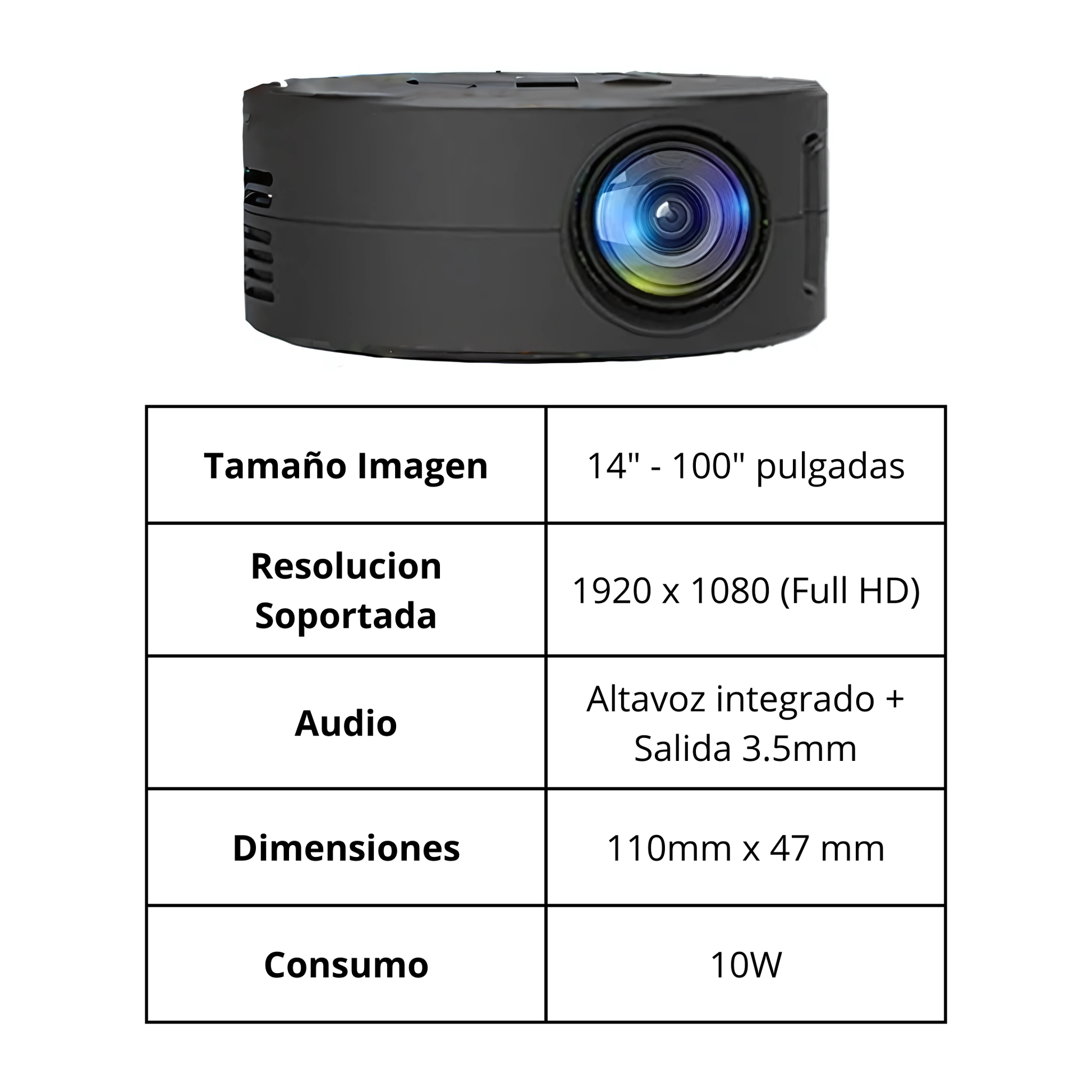 Gracias a sus conexiones HDMI, USB y AV, puedes enlazar tu consola, laptop o memoria USB sin complicaciones. Y al ser alimentado por power banks comunes (5V/2A), no necesitas enchufes: el cine va contigo a donde quieras.